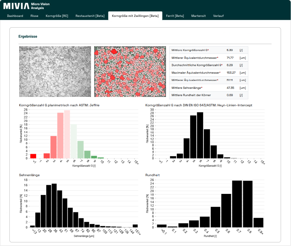 Vektorbasierte Berichte für die Korngrößenbestimmung auch bei Zwillingen.