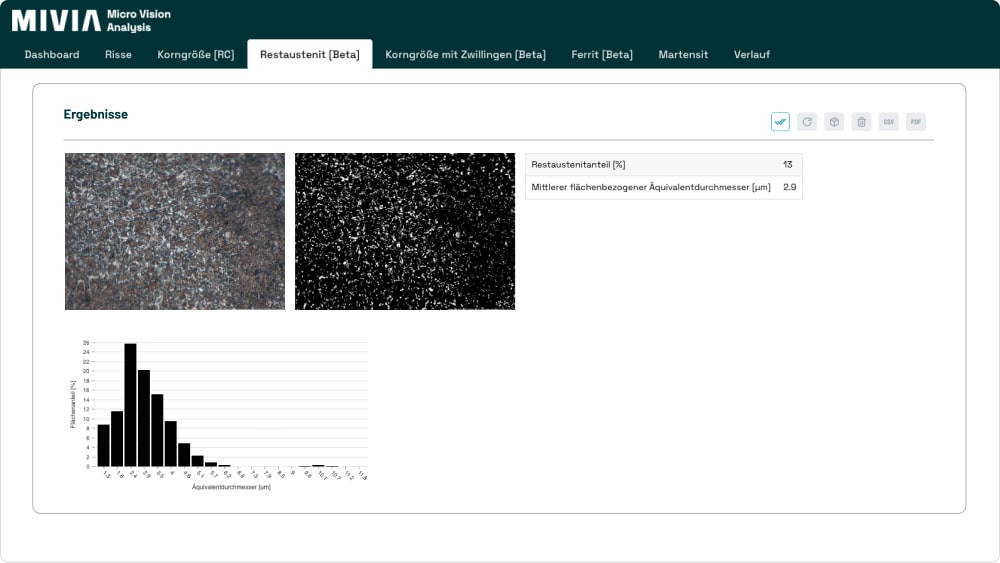 MiViA analysiert schnell und zuverlässig den Anteil des Restaustenits in Stahlproben.