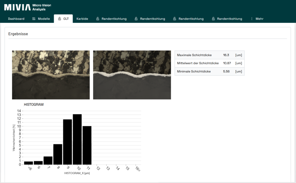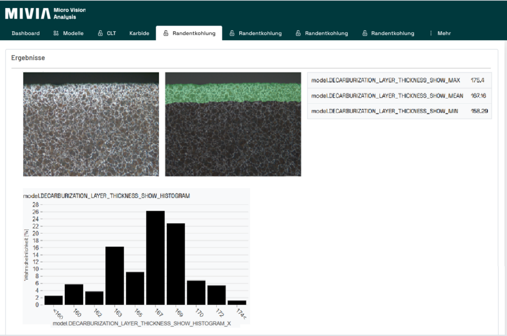 MiViA erkennt den Gefügeübergang automatisch und setzt eine präzise Messlinie für die Randentkohlung.
