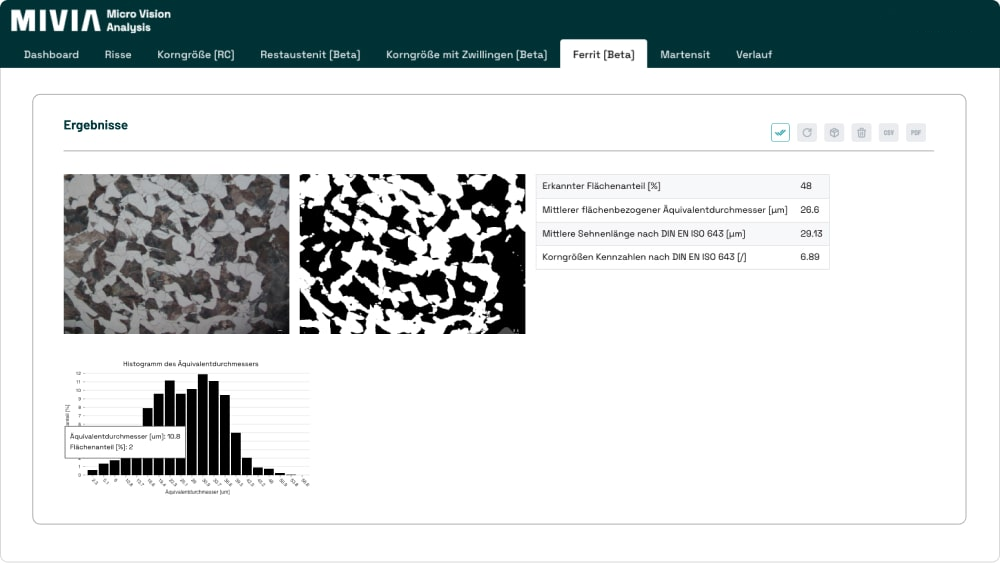 MiViA analysiert schnell und zuverlässig den Anteil des Restaustenits in Stahlproben.